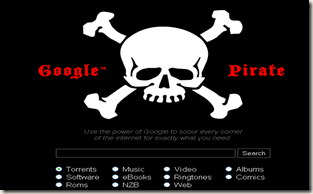 Como você pode ver com o Google Pirate, você pode buscar, torrents, music, video, albuns, software, eBooks, Ringtones, Comics, Roms...